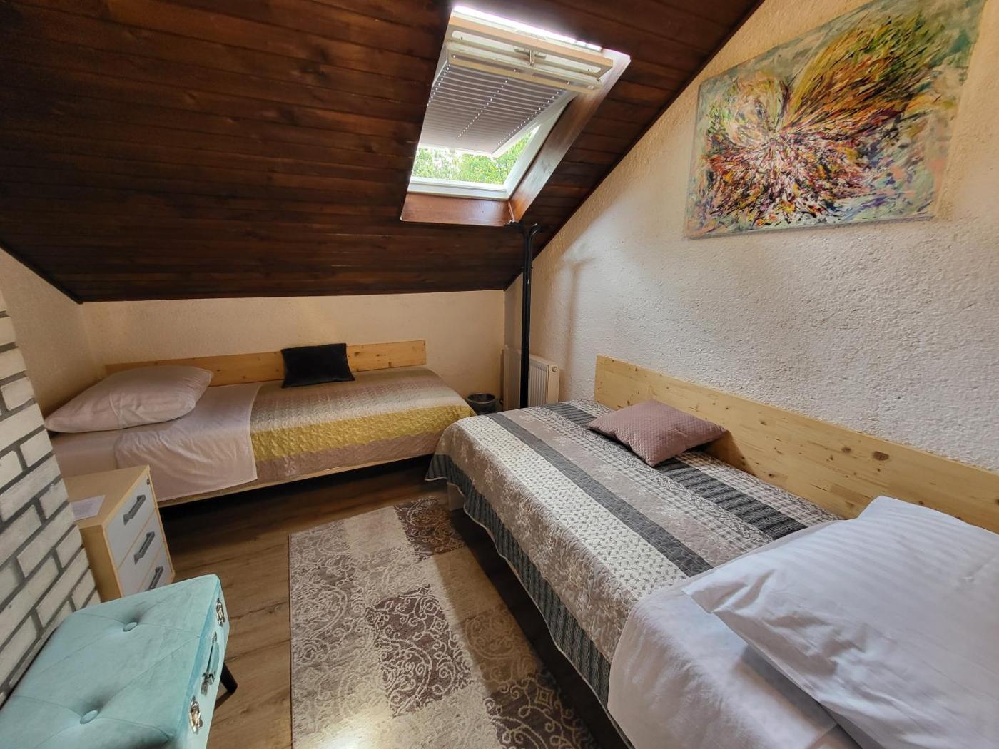 Set in Kanal, Koča sredi gozda has a garden and shared lounge. Both free WiFi and parking on-site are available at the guest house free of charge.